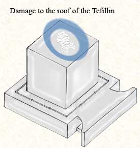 - אם הבית ניזוק בגג הבית, אף שהפגם גדול מ-1 מ"מ, ניתן להניח את התפילין והם כשרות.