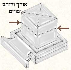 מידות בית התפילין חייבות להיות שוות באורך וברוחב, ואורך האלכסון חייב להיות שווה למידות האורך והרוחב בתוספת 2/5 על מידות האורך והרוחב . |